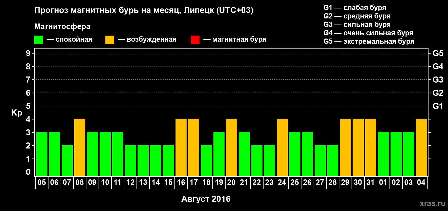 Прогноз магнитных бурь в Липецке на 5 августа 2016 года