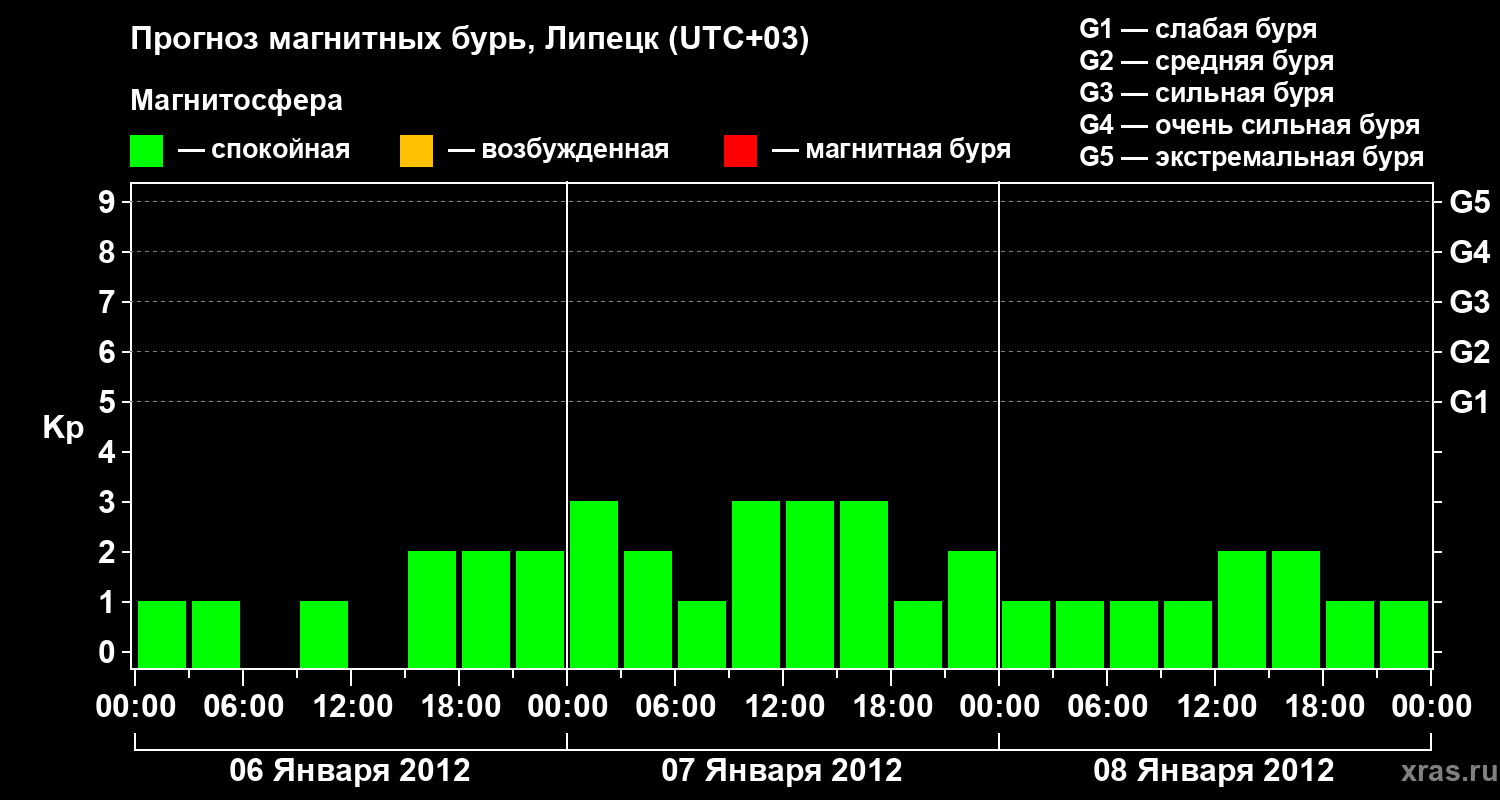 Прогноз магнитных бурь в Липецке на 6 января 2012 года