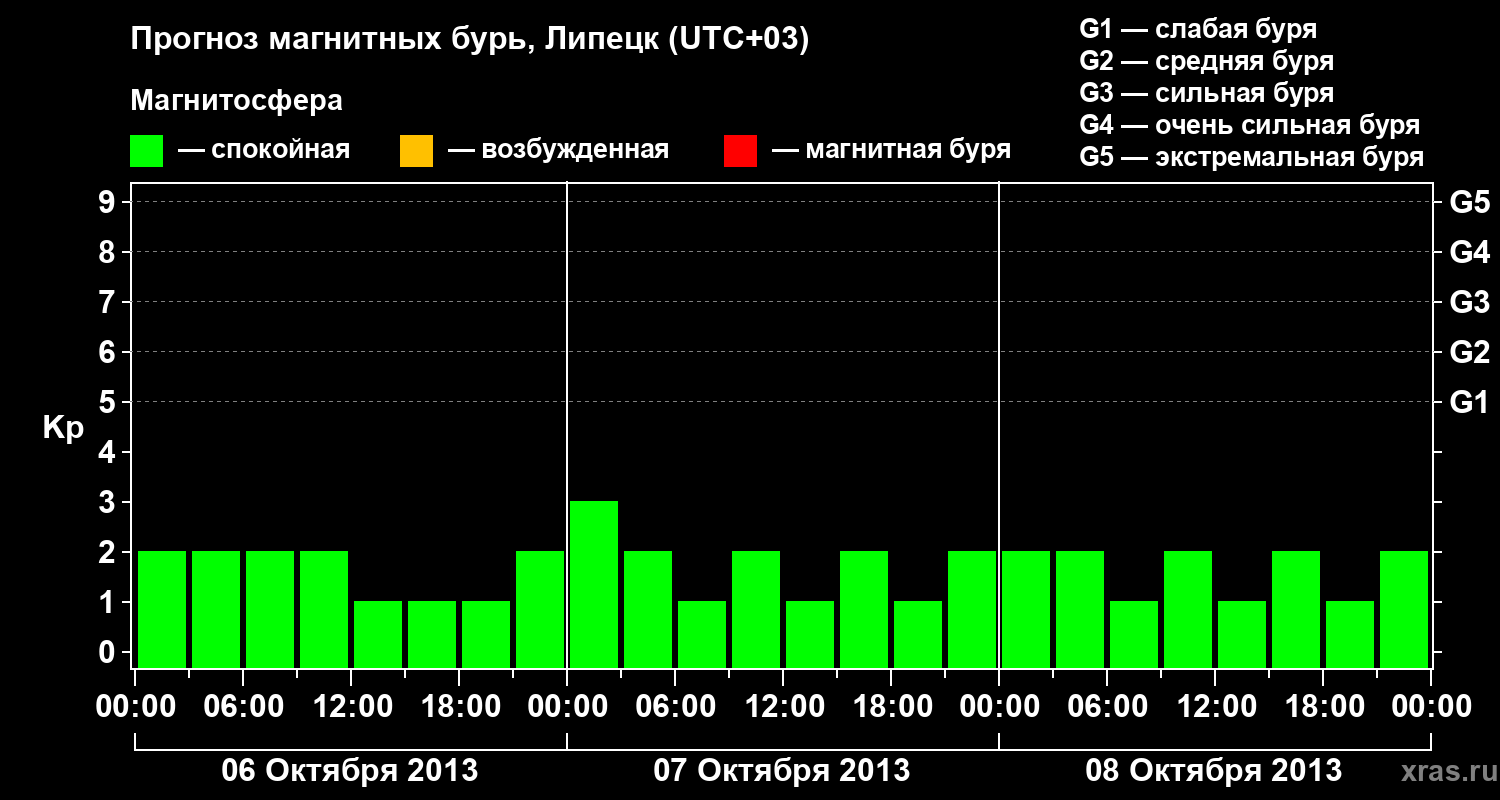 Прогноз магнитных бурь в Липецке на 6 октября 2013 года