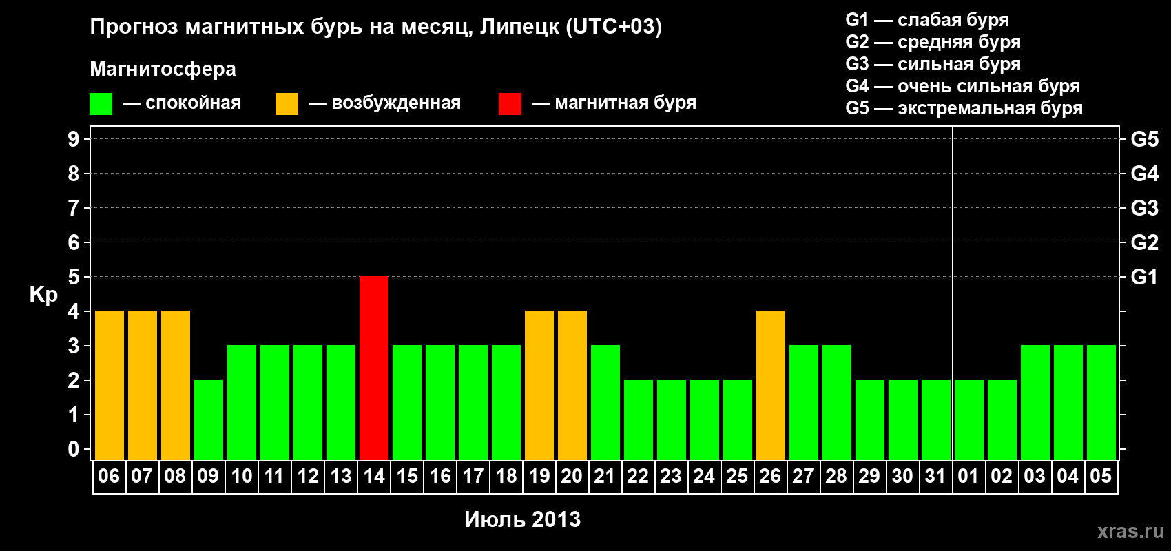 Прогноз магнитных бурь в Липецке — 6 июля 2013 года