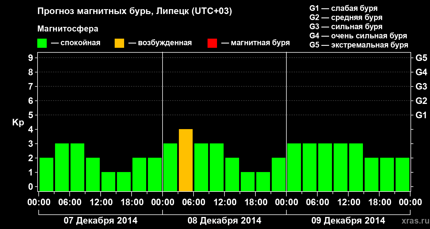 Прогноз магнитных бурь в Липецке на 7 декабря 2014 года