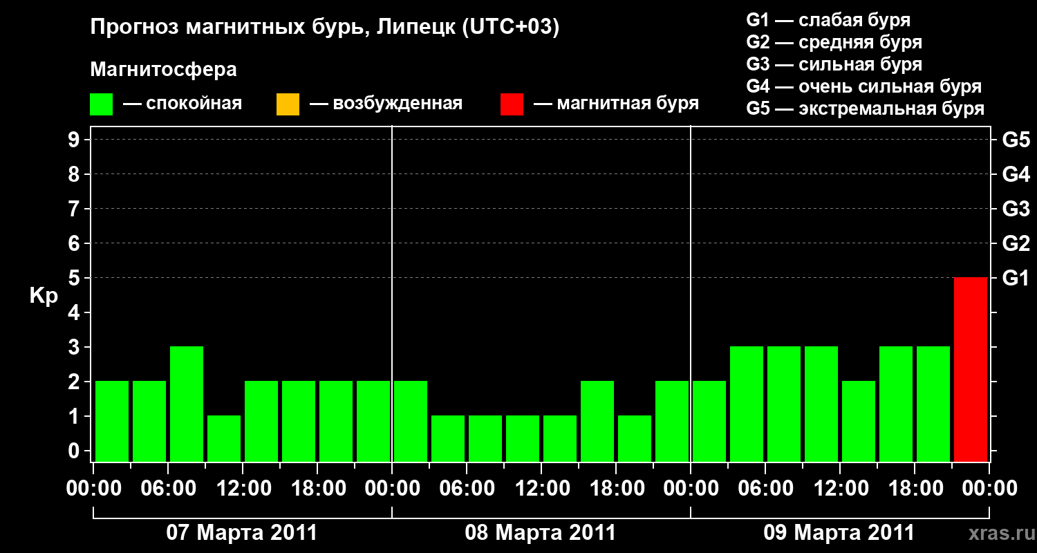 Прогноз магнитных бурь в Липецке — 7 марта 2011 года
