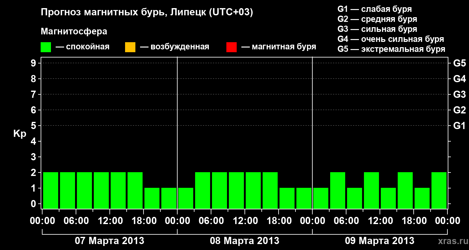 Прогноз магнитных бурь в Липецке — 7 марта 2013 года