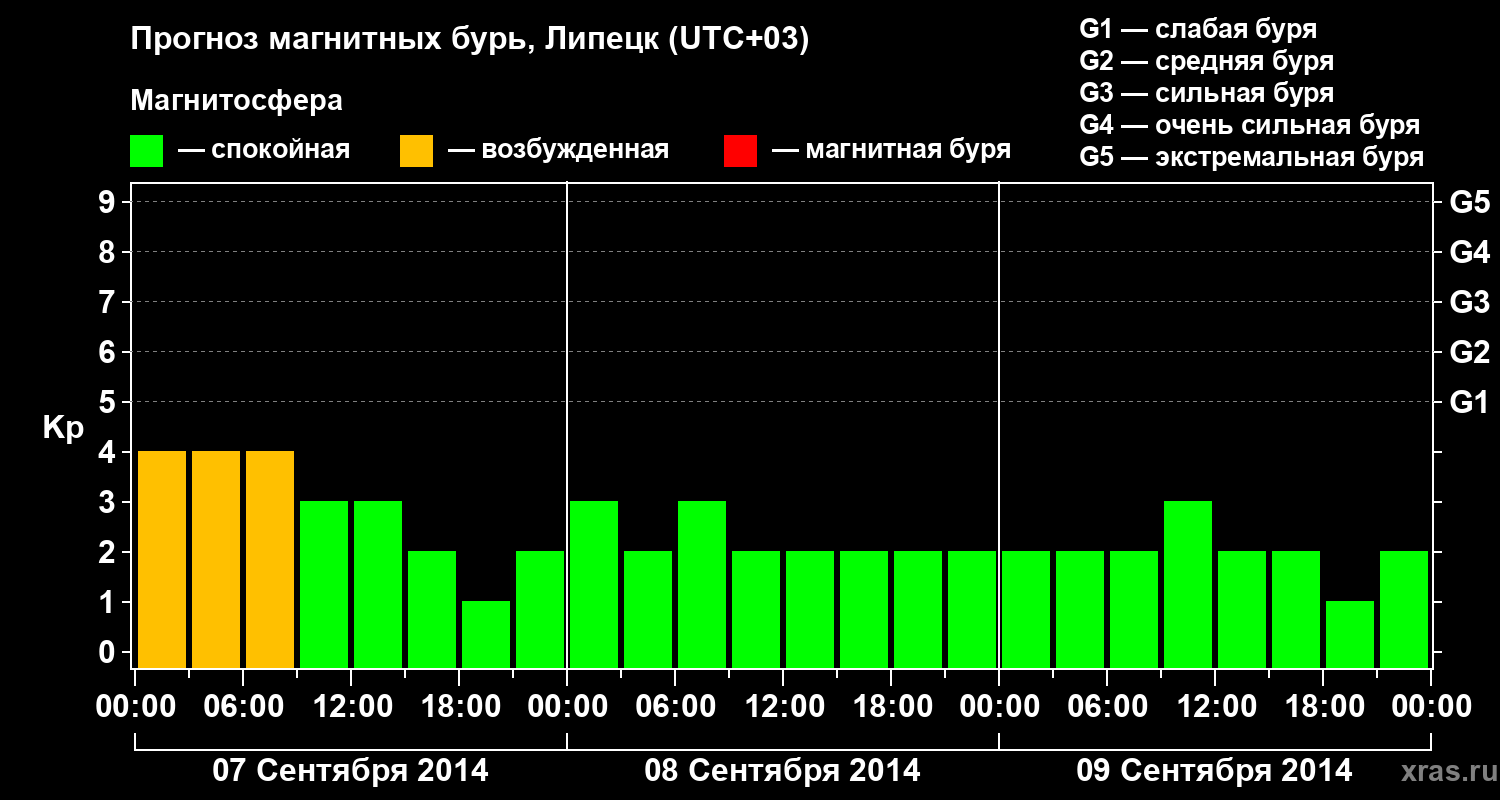 Прогноз магнитных бурь в Липецке — 7 сентября 2014 года