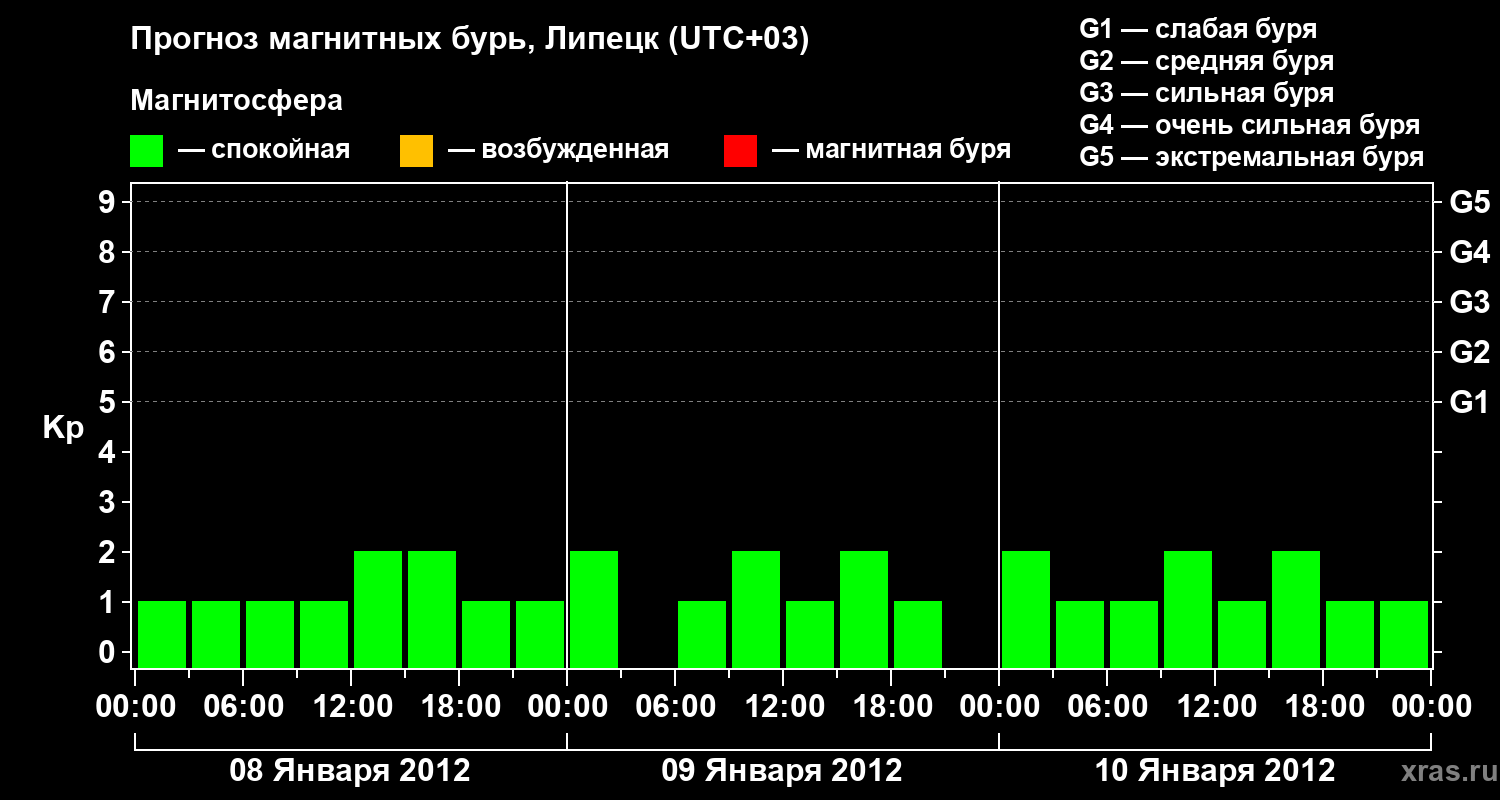 Прогноз магнитных бурь в Липецке на 8 января 2012 года