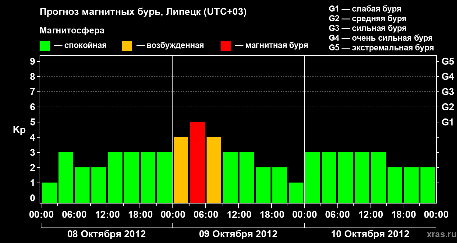 Прогноз магнитных бурь в Липецке на 8 октября 2012 года