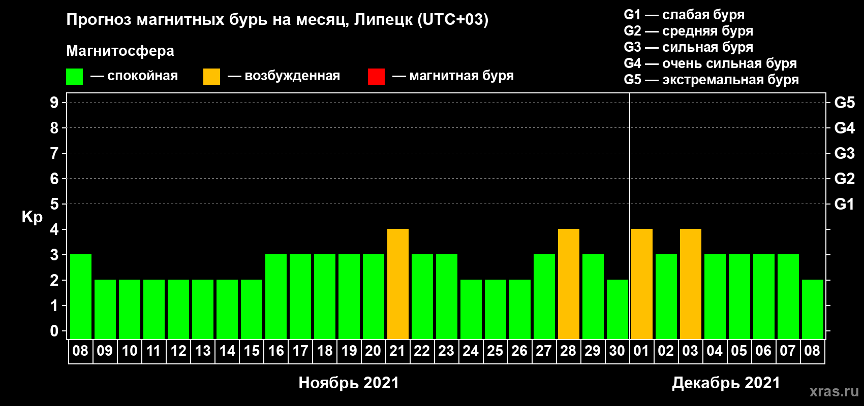 Прогноз магнитных бурь в Липецке — 8 ноября 2021 года