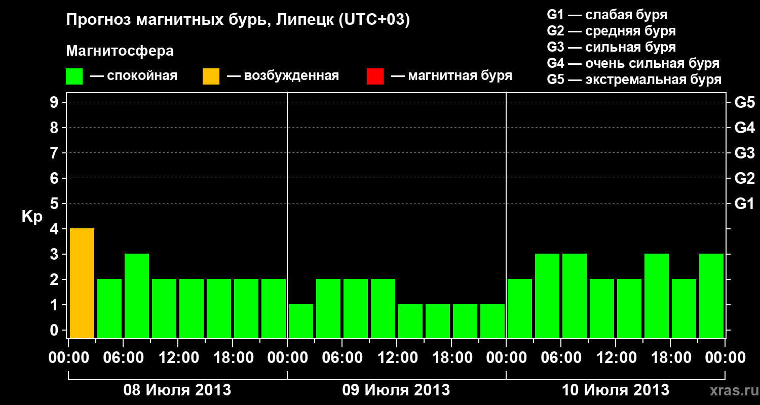 Прогноз магнитных бурь в Липецке на 8 июля 2013 года