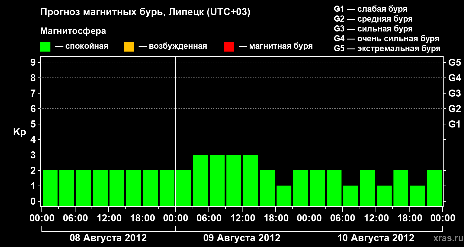 Прогноз магнитных бурь в Липецке на 8 августа 2012 года