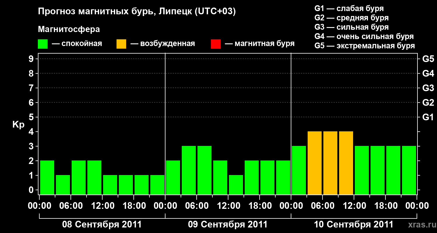 Прогноз магнитных бурь в Липецке — 8 сентября 2011 года