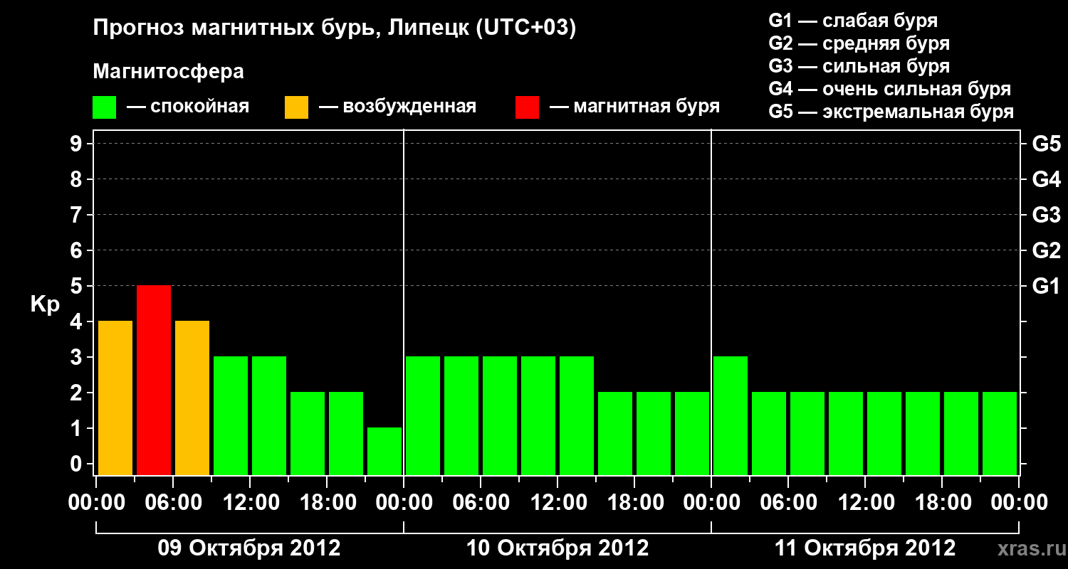 Прогноз магнитных бурь в Липецке на 9 октября 2012 года