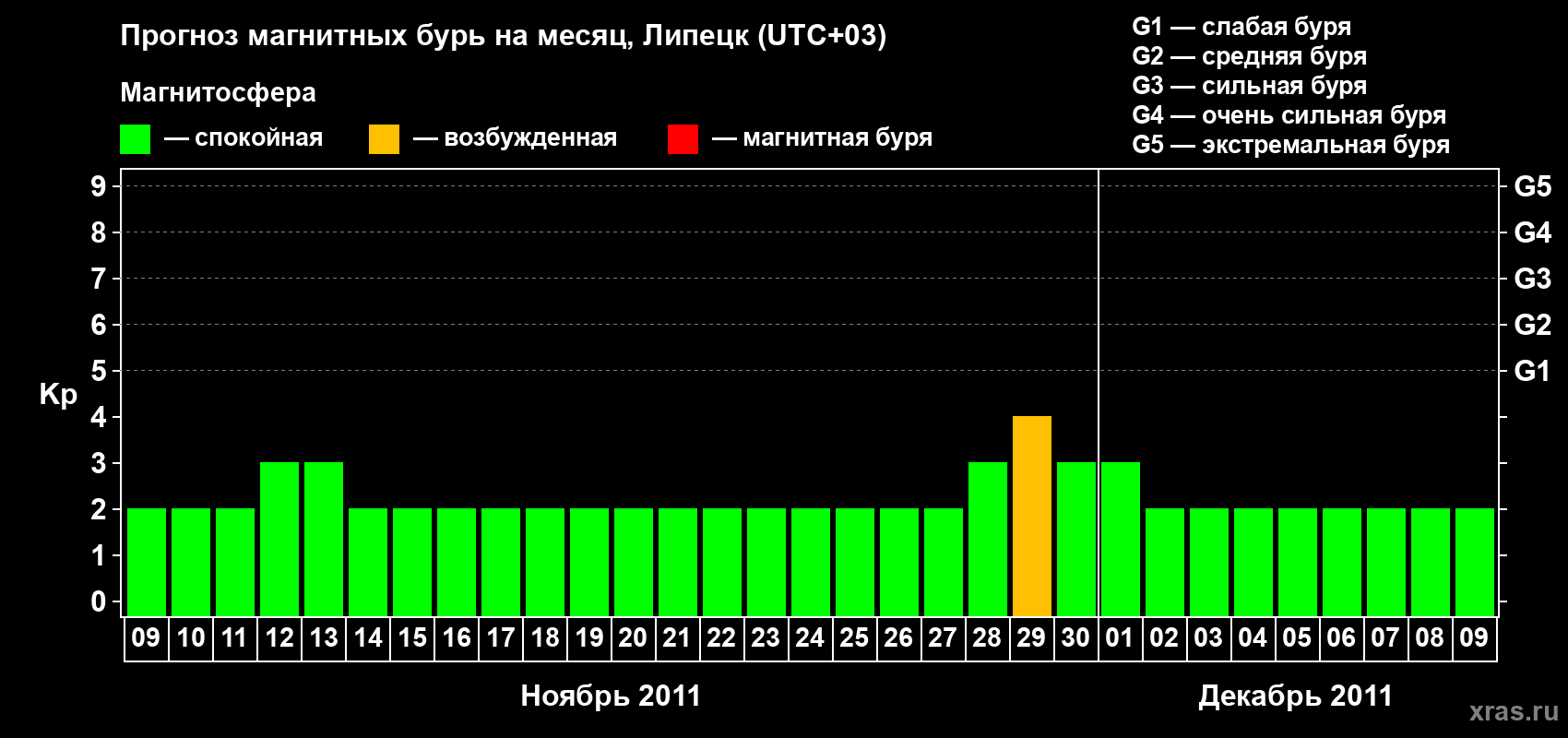 Прогноз магнитных бурь в Липецке — 9 ноября 2011 года