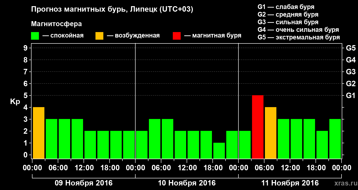 Прогноз магнитных бурь в Липецке — 9 ноября 2016 года