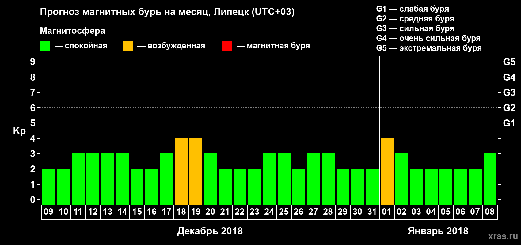 Прогноз магнитных бурь в Липецке на 9 декабря 2017 года