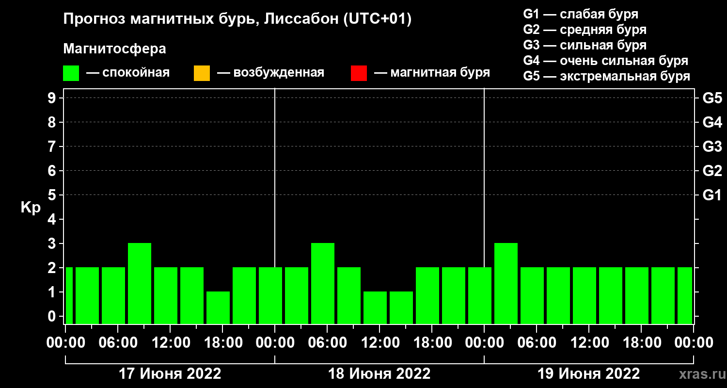 Прогноз магнитных бурь в Лиссабоне — 17 июня 2022 года