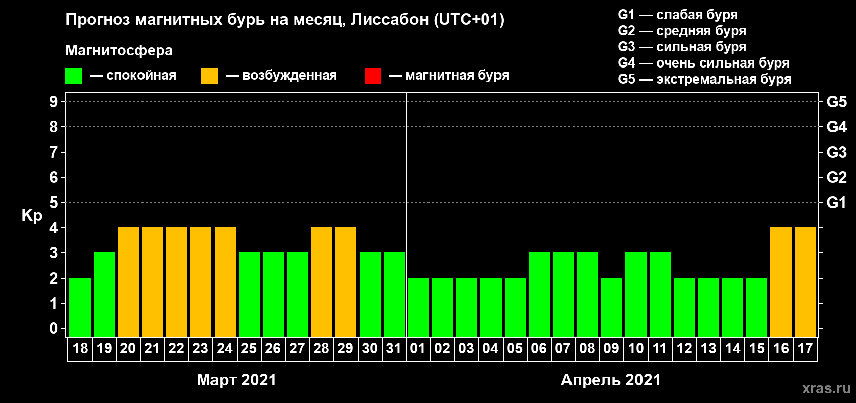 Прогноз магнитных бурь в Лиссабоне — 18 марта 2021 года