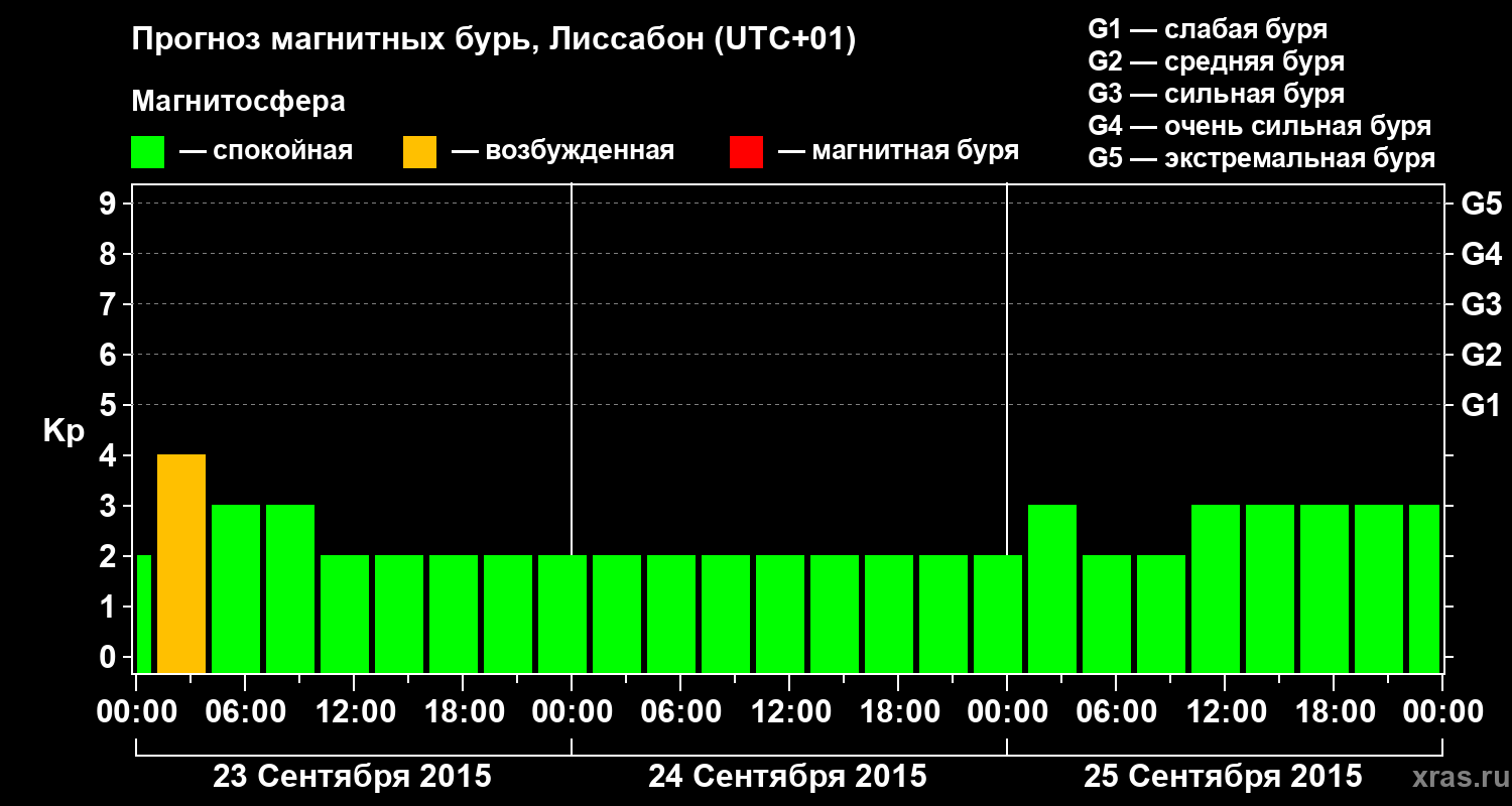 Прогноз магнитных бурь в Лиссабоне — 23 сентября 2015 года
