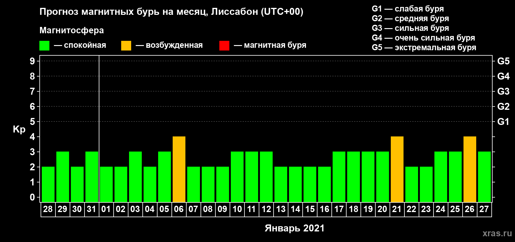 Прогноз магнитных бурь в Лиссабоне на 28 декабря 2020 года