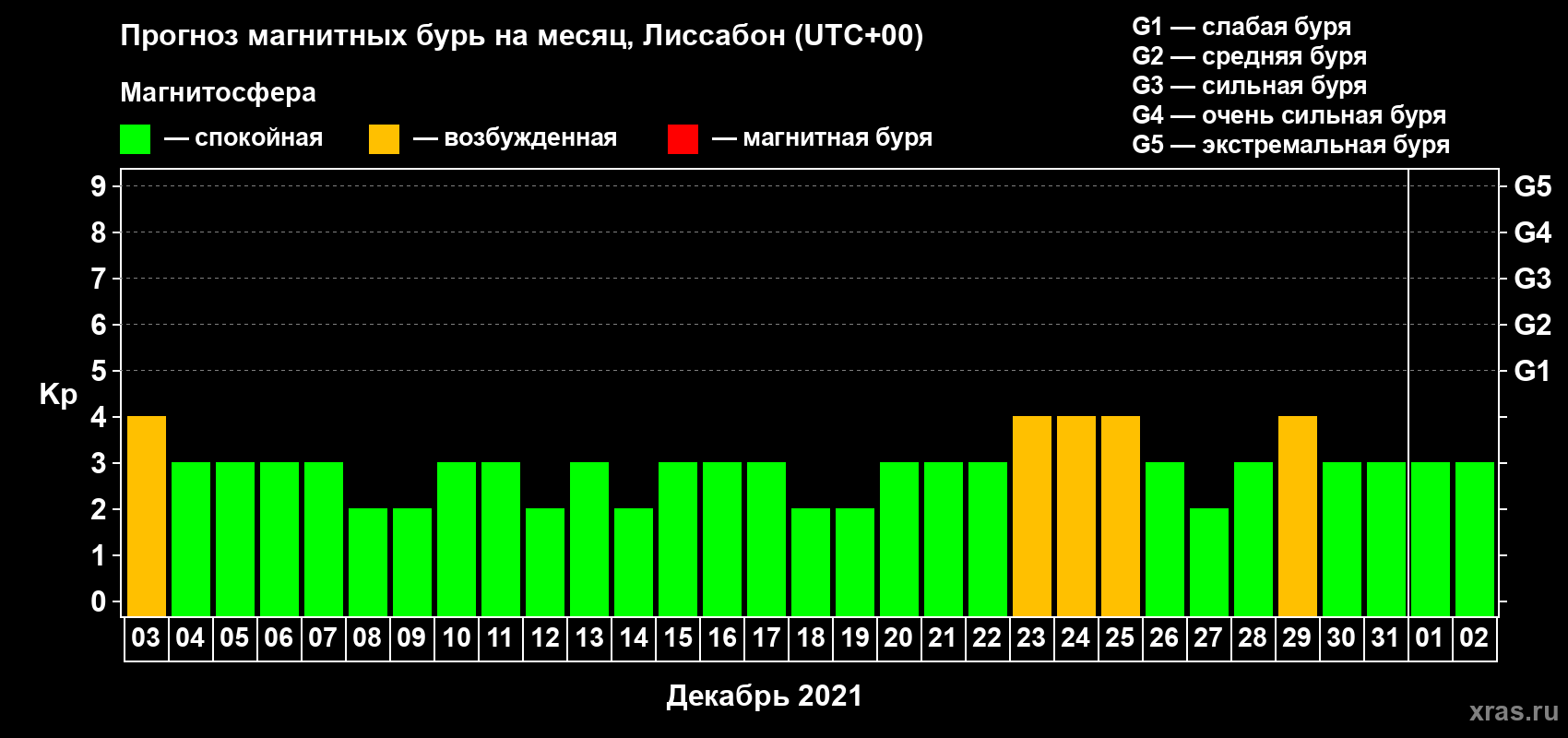 Прогноз магнитных бурь в Лиссабоне на 3 декабря 2021 года