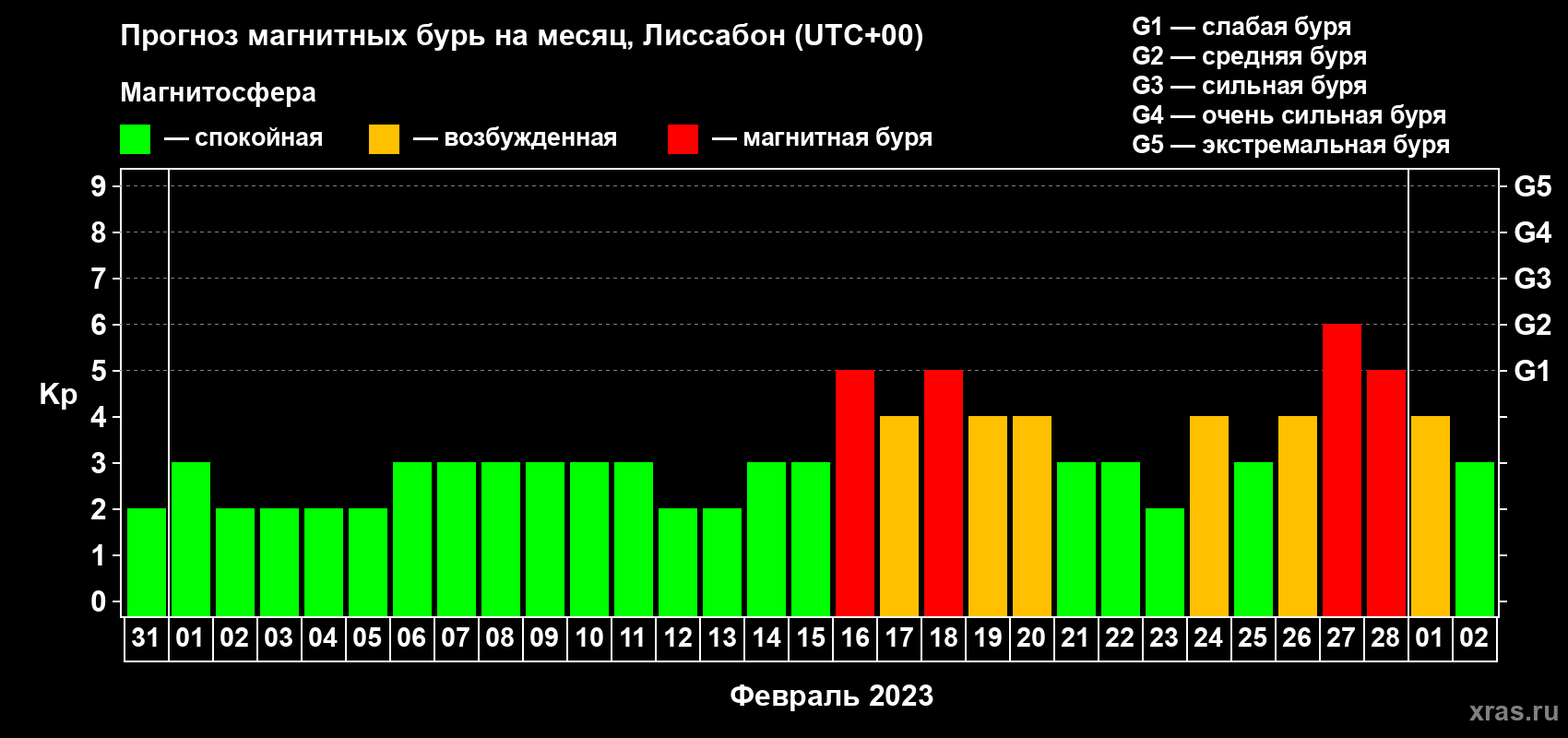 Прогноз магнитных бурь в Лиссабоне — 31 января 2023 года