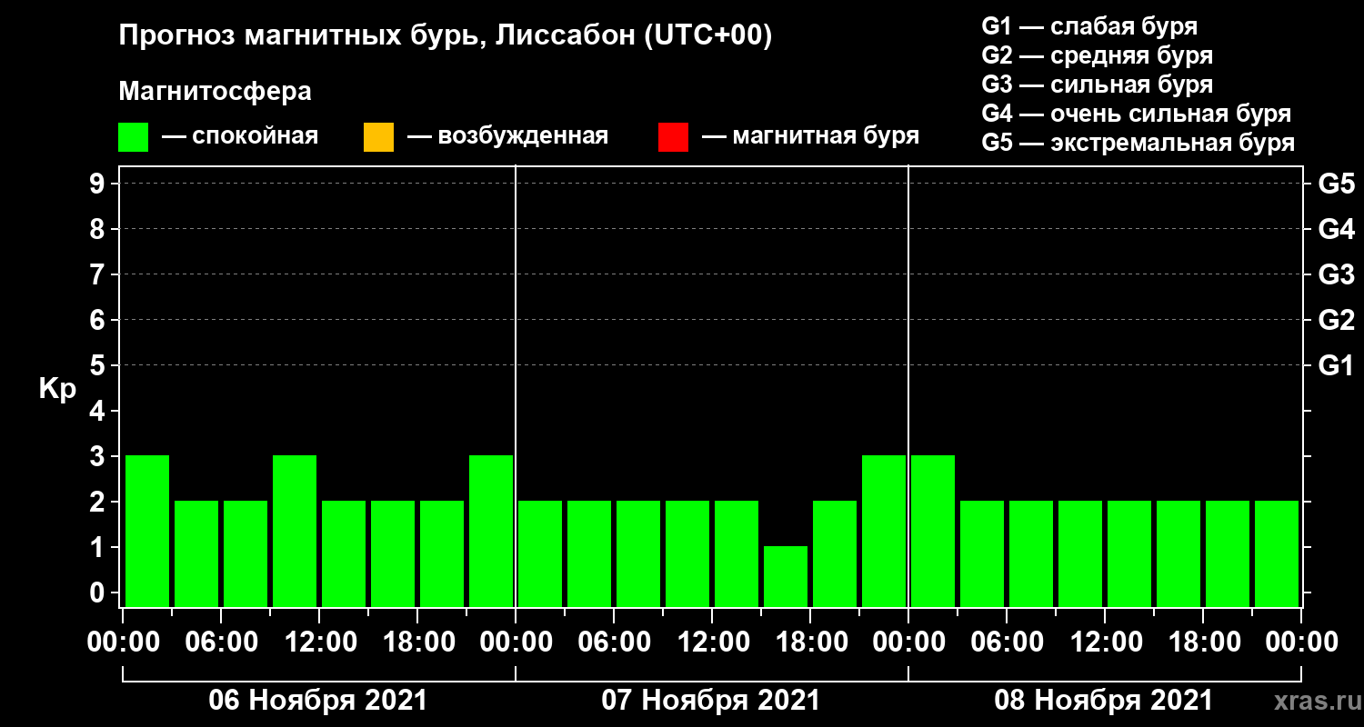 Прогноз магнитных бурь в Лиссабоне — 6 ноября 2021 года