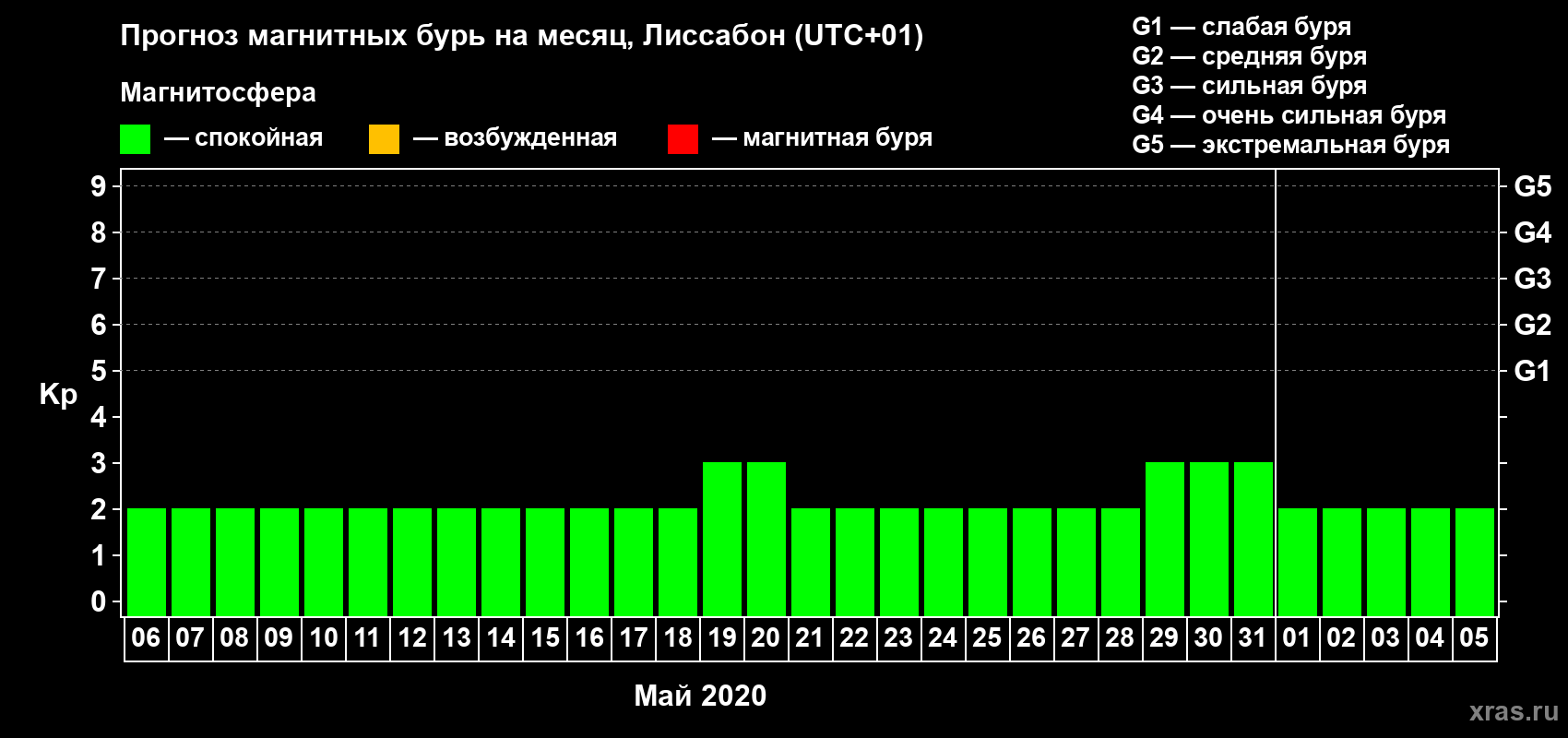 Прогноз магнитных бурь в Лиссабоне — 6 мая 2020 года