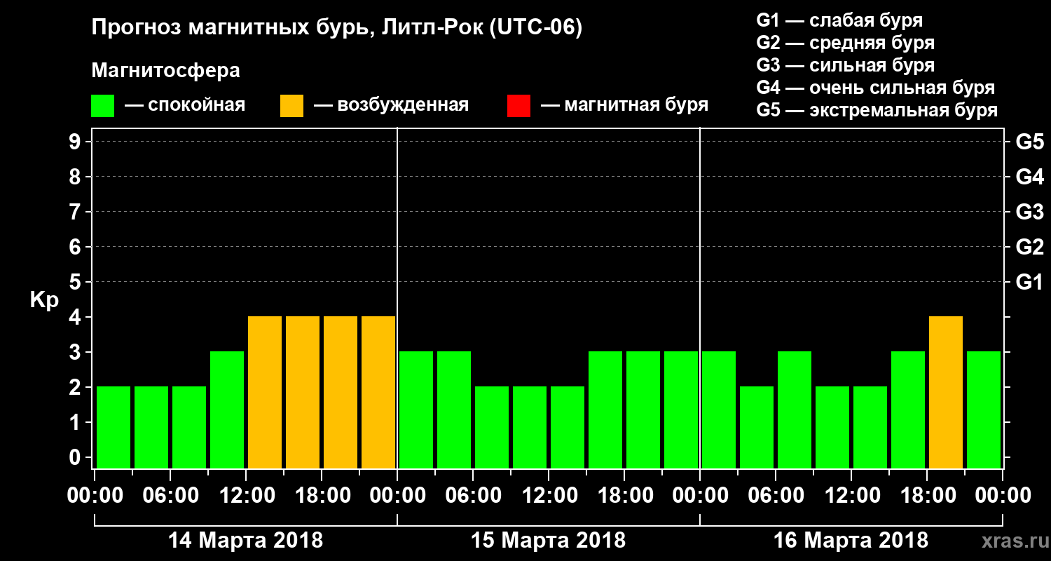 Прогноз магнитных бурь в Литл-Роке — 14 марта 2018 года