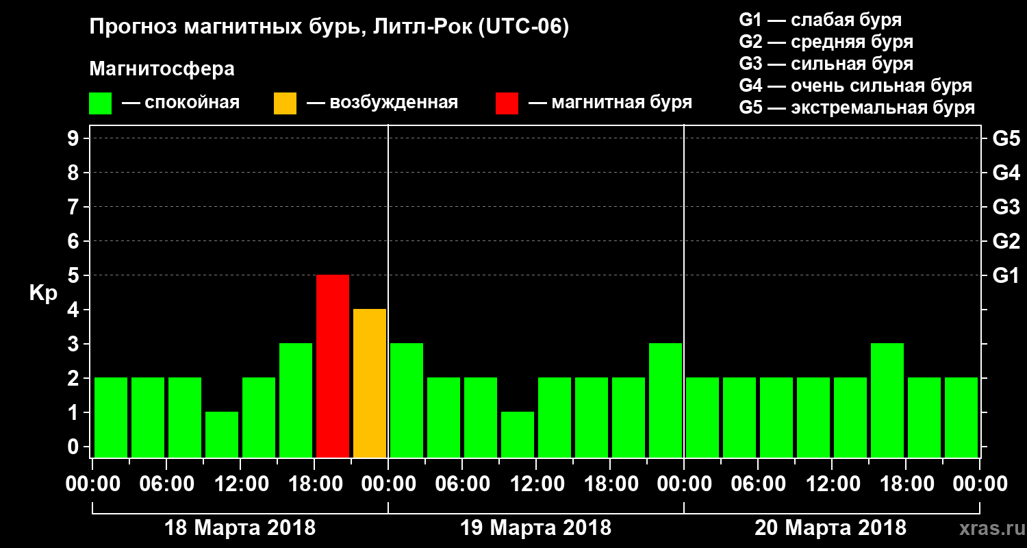 Прогноз магнитных бурь в Литл-Роке — 18 марта 2018 года