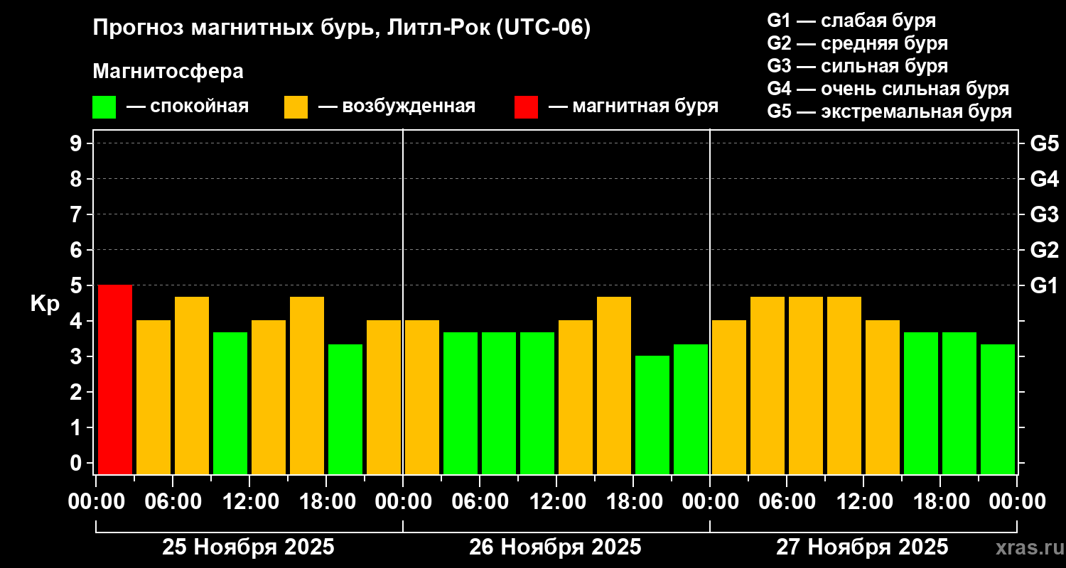 Прогноз магнитных бурь в Литл-Роке на 25 ноября 2025 года