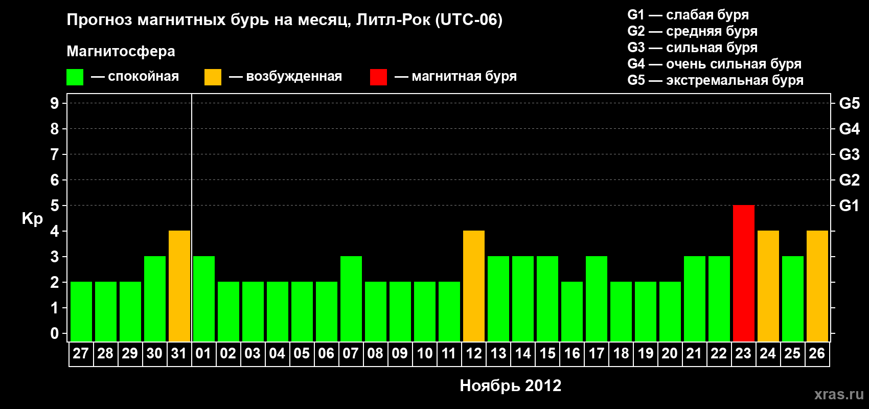 Прогноз магнитных бурь в Литл-Роке на 27 октября 2012 года