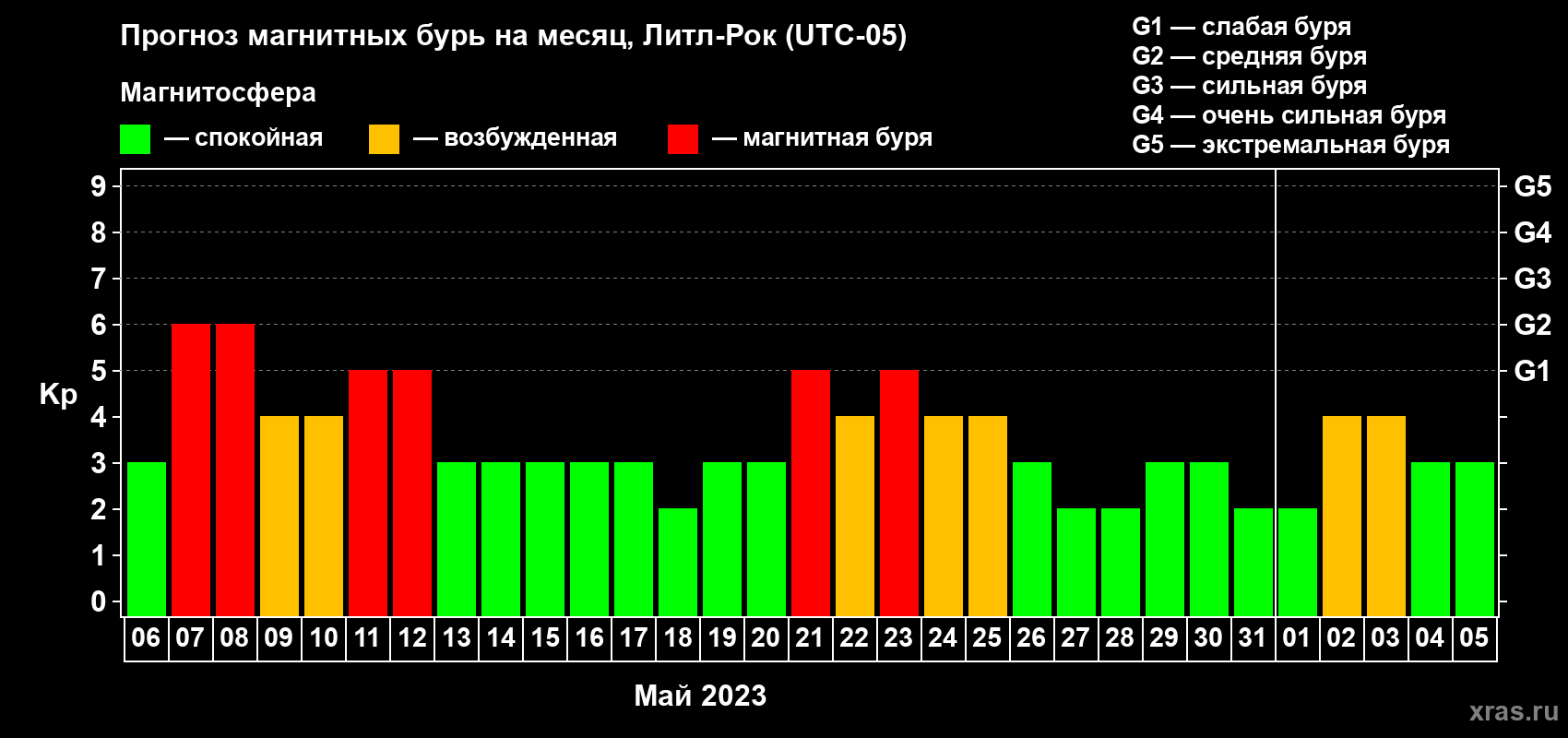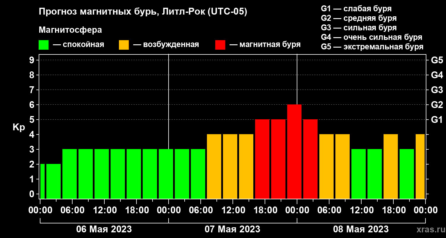 Прогноз магнитных бурь в Литл-Роке на 6 мая 2023 года