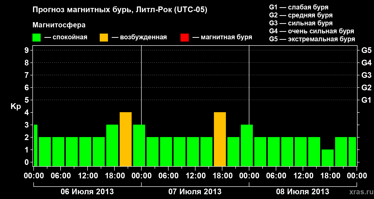 Прогноз магнитных бурь в Литл-Роке — 6 июля 2013 года
