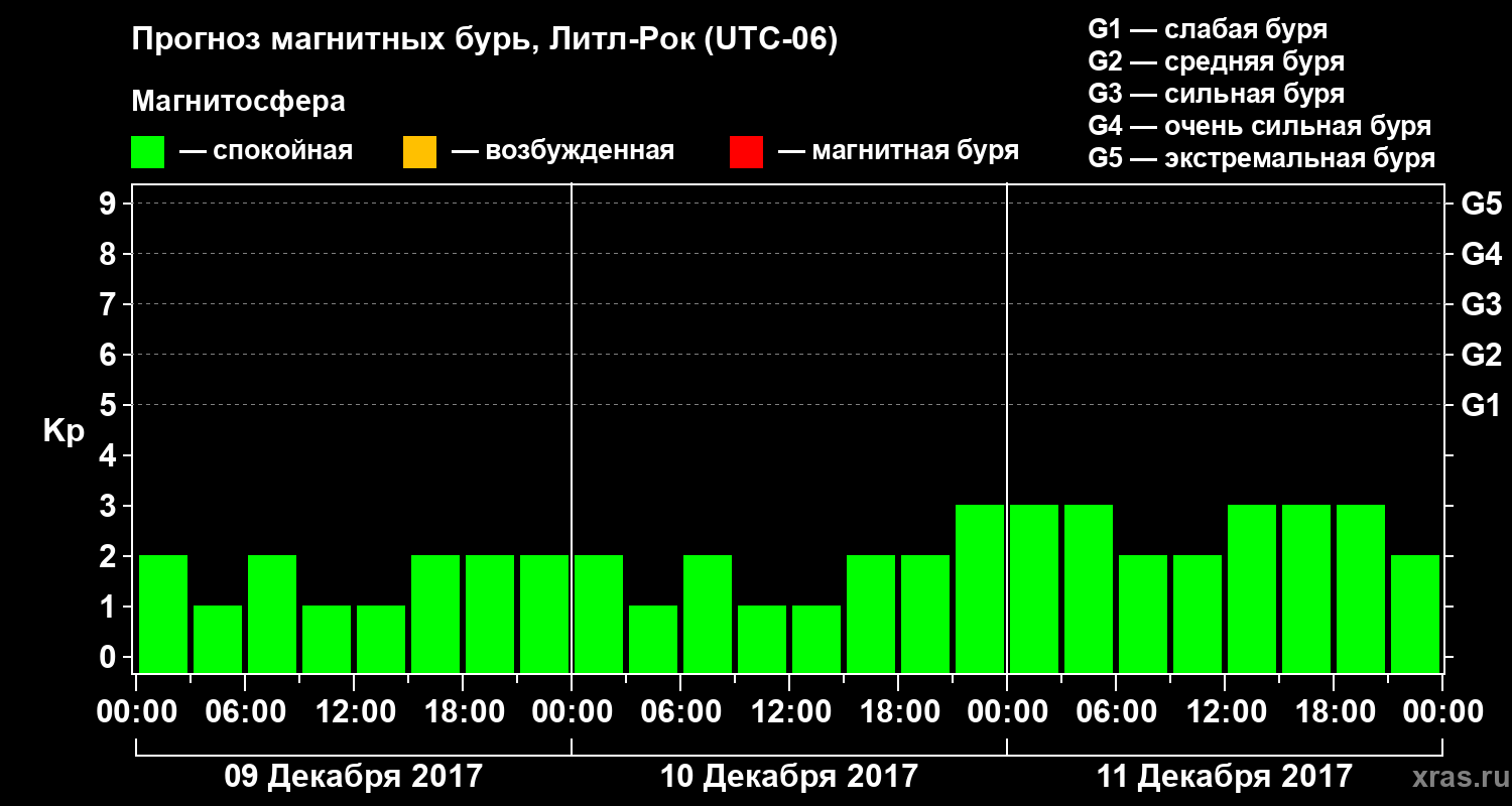 Прогноз магнитных бурь в Литл-Роке — 9 декабря 2017 года