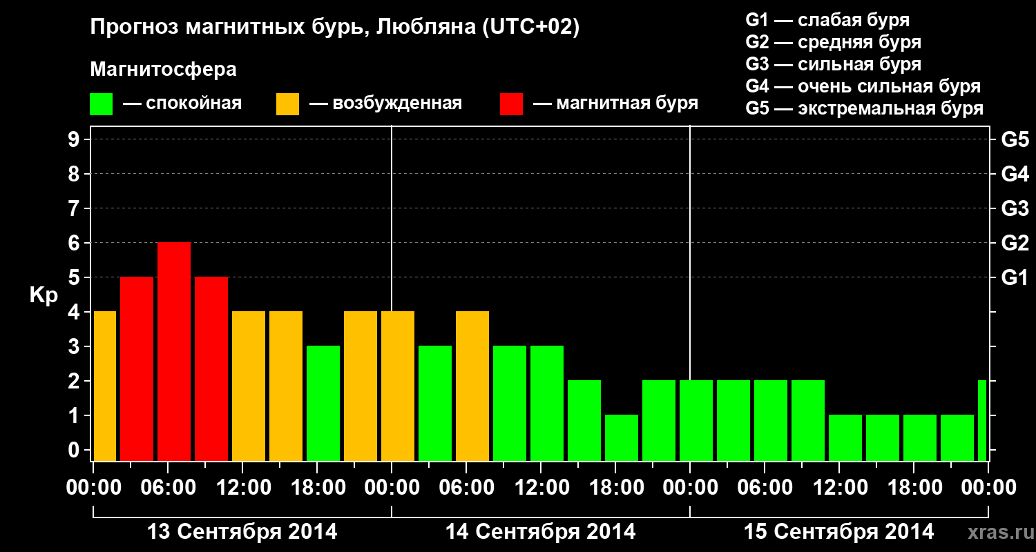 Прогноз магнитных бурь в Любляне — 13 сентября 2014 года