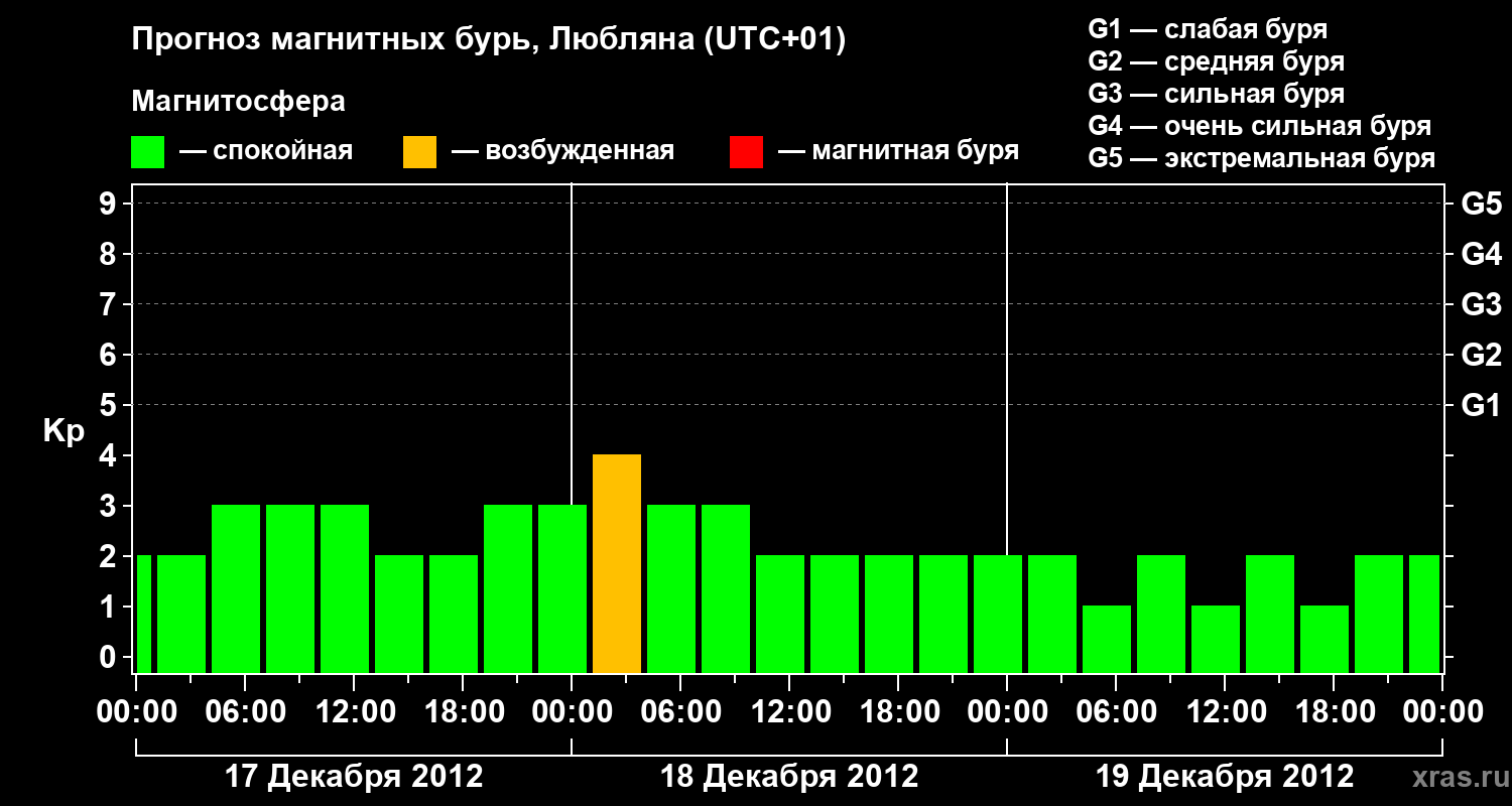 Прогноз магнитных бурь в Любляне — 17 декабря 2012 года