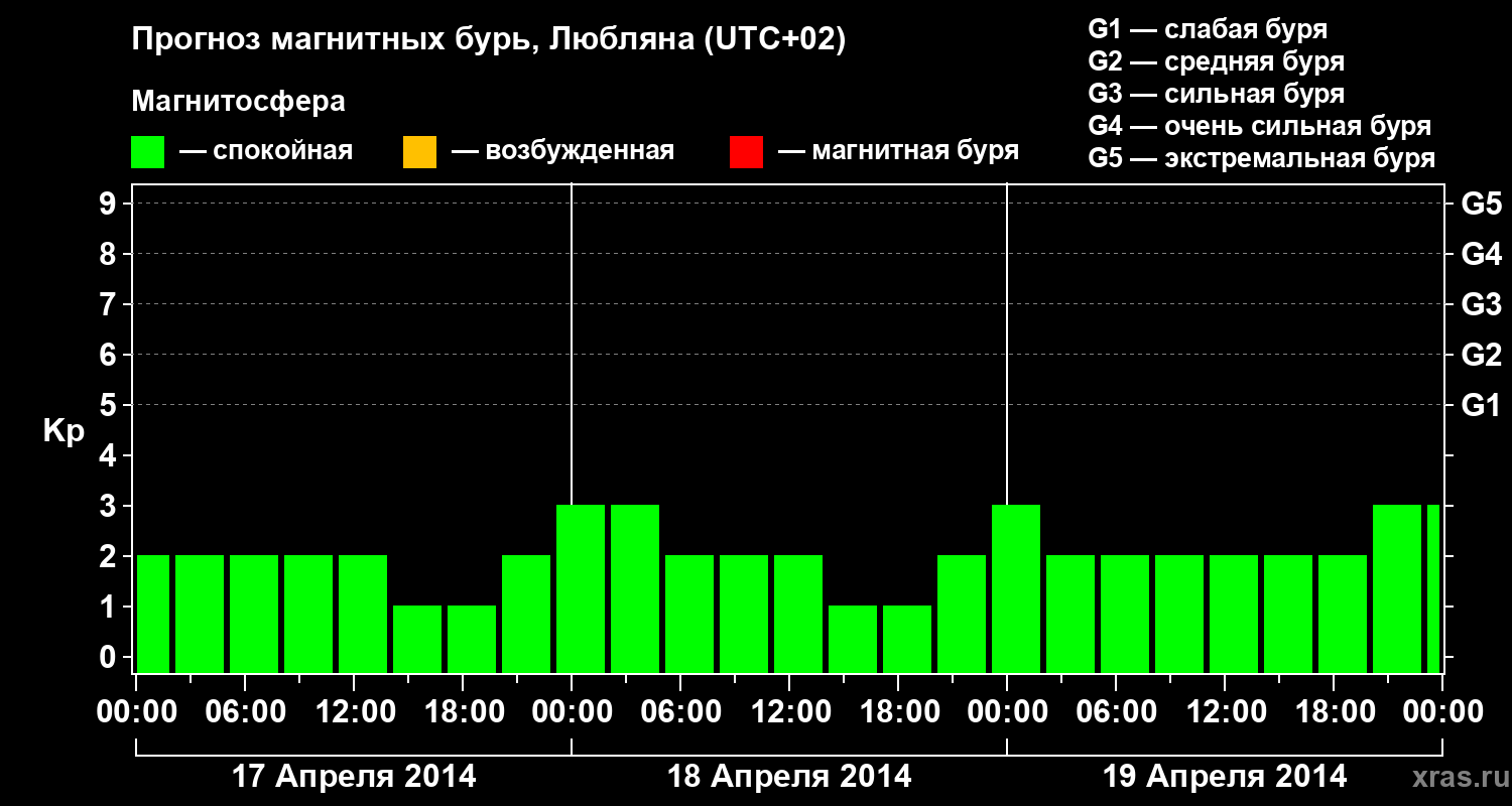 Прогноз магнитных бурь в Любляне — 17 апреля 2014 года