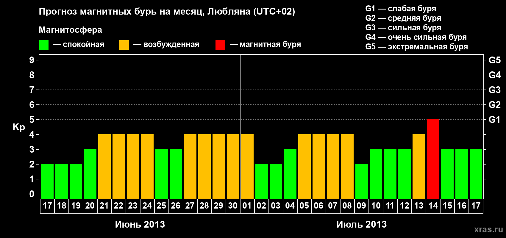 Прогноз магнитных бурь в Любляне — 17 июня 2013 года
