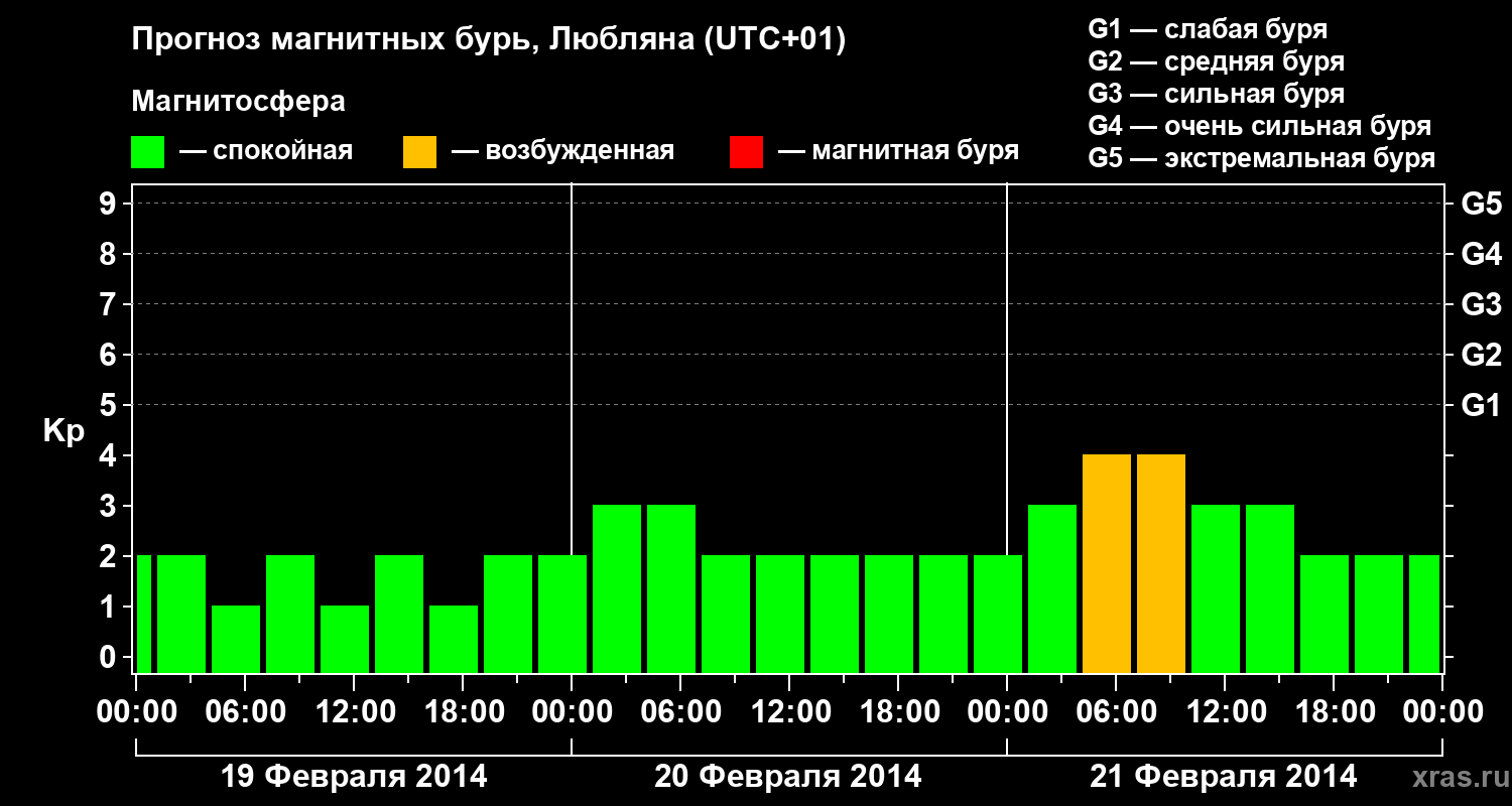Прогноз магнитных бурь в Любляне — 19 февраля 2014 года
