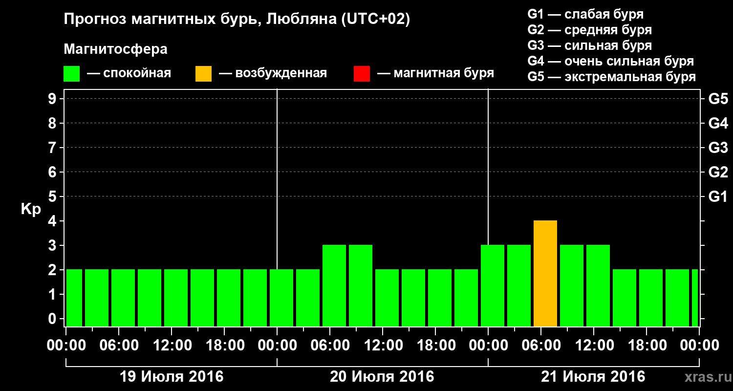Прогноз магнитных бурь в Любляне — 19 июля 2016 года