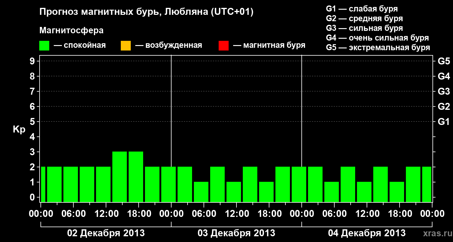 Прогноз магнитных бурь в Любляне — 2 декабря 2013 года