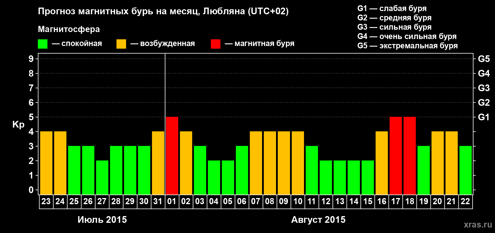 Прогноз магнитных бурь в Любляне — 23 июля 2015 года