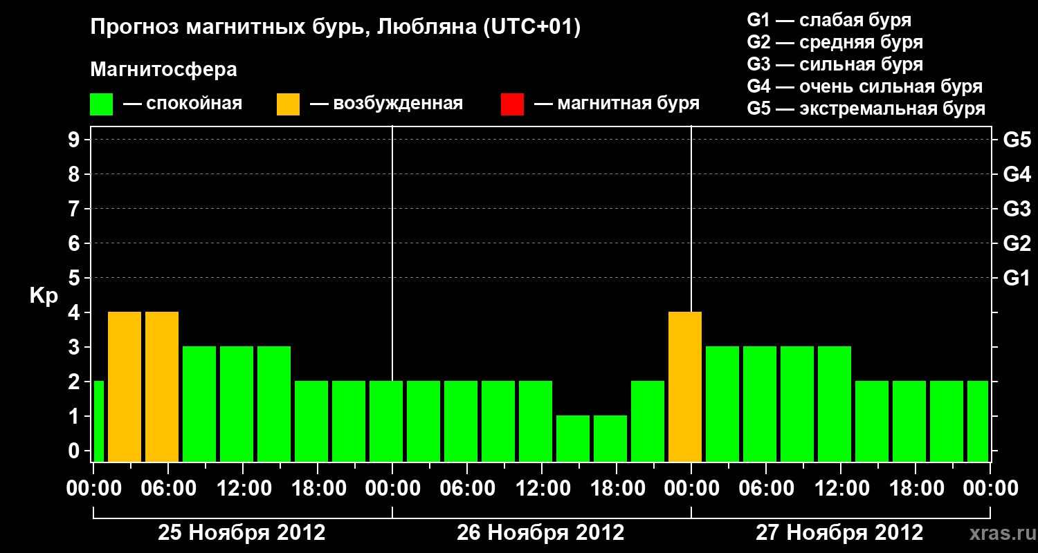 Прогноз магнитных бурь в Любляне — 25 ноября 2012 года