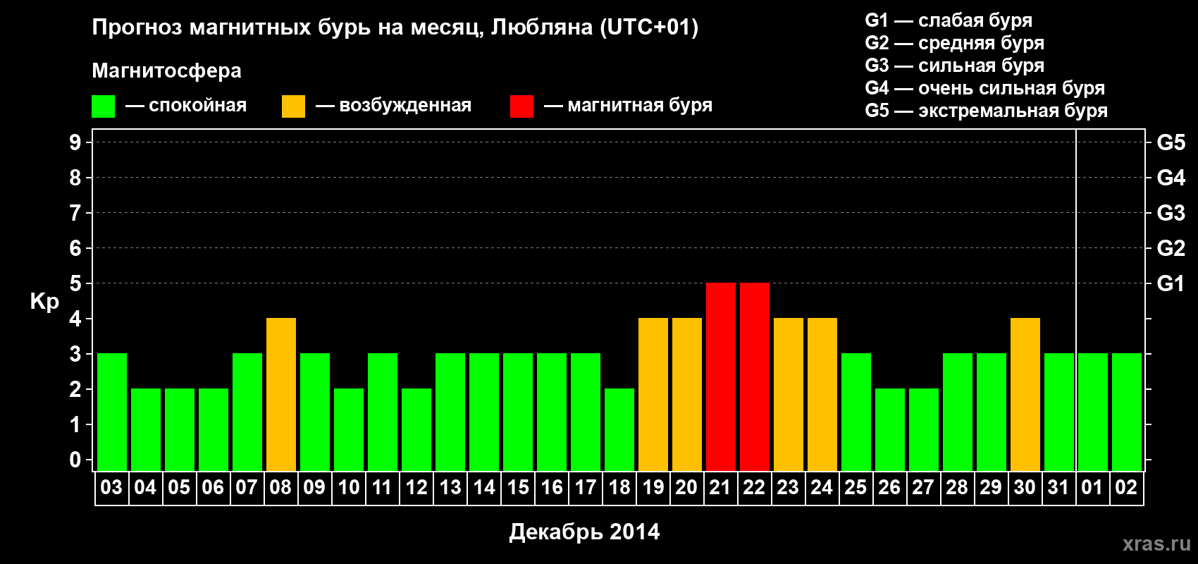 Прогноз магнитных бурь в Любляне — 3 декабря 2014 года