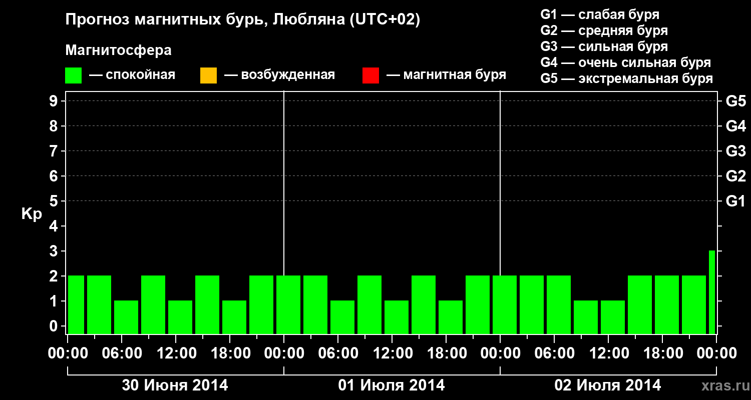 Прогноз магнитных бурь в Любляне — 30 июня 2014 года