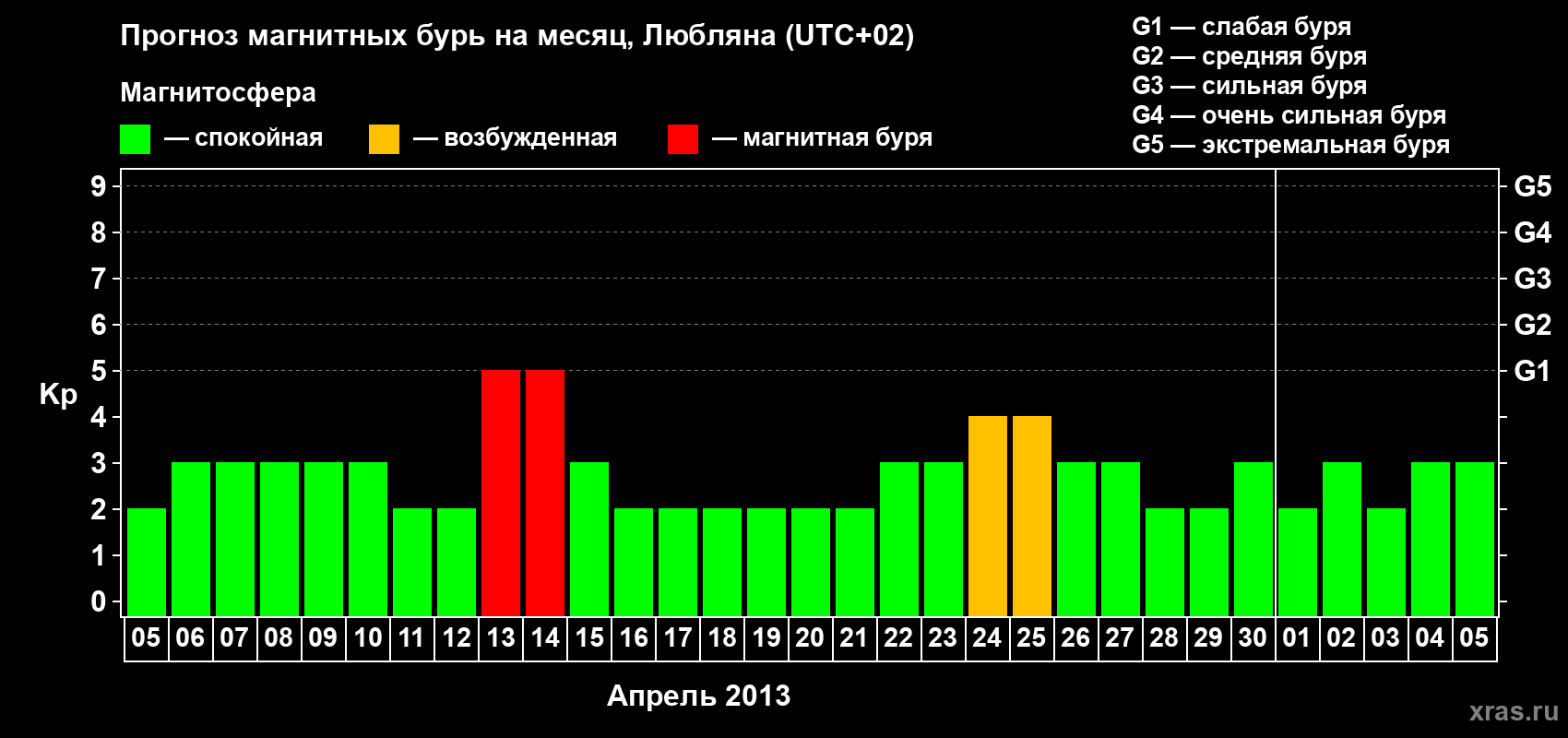 Прогноз магнитных бурь в Любляне — 5 апреля 2013 года