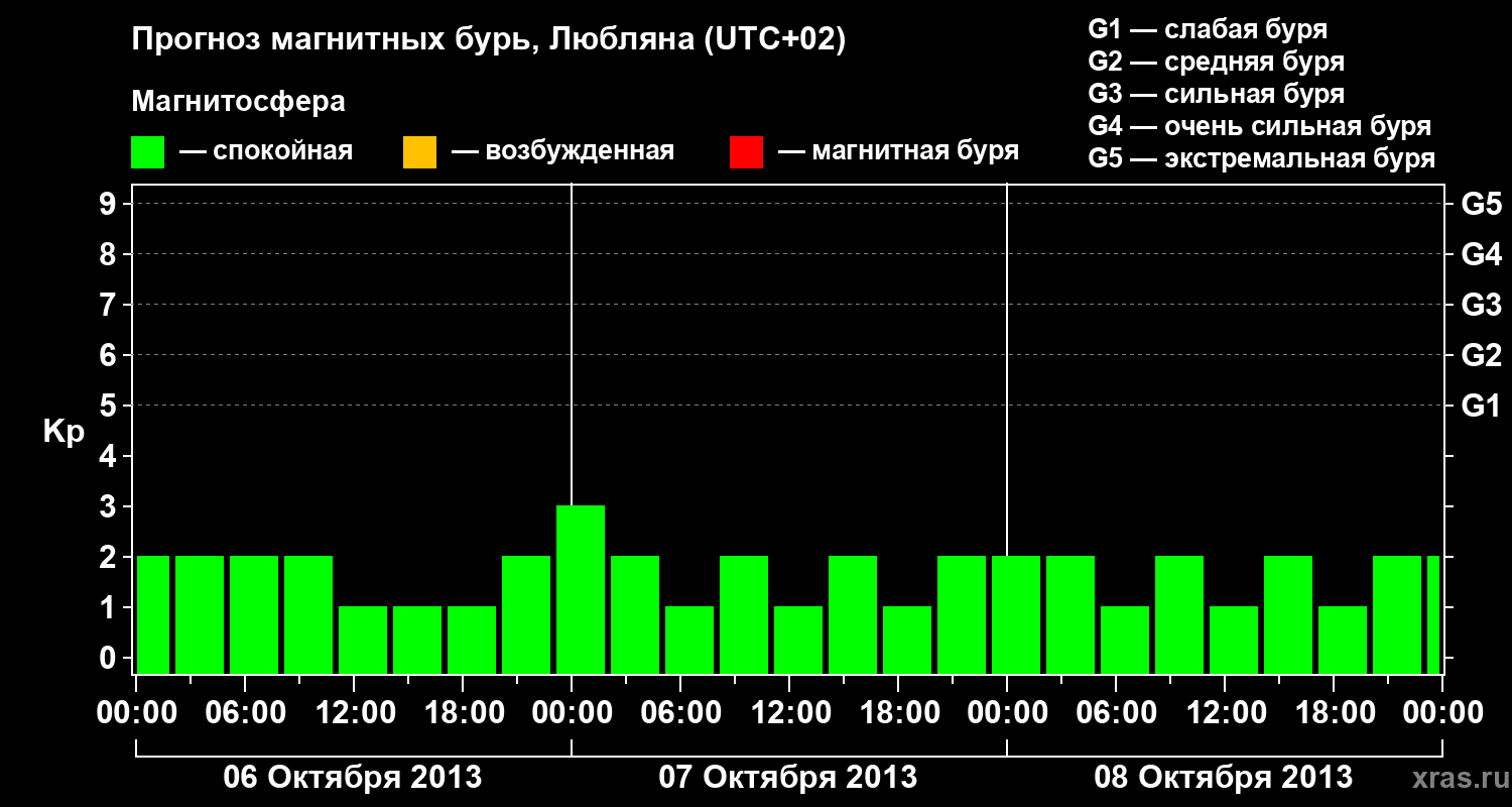 Прогноз магнитных бурь в Любляне — 6 октября 2013 года