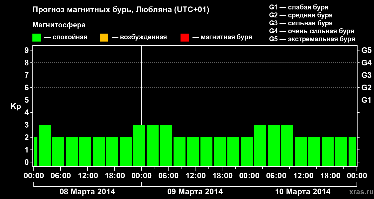 Прогноз магнитных бурь в Любляне — 8 марта 2014 года