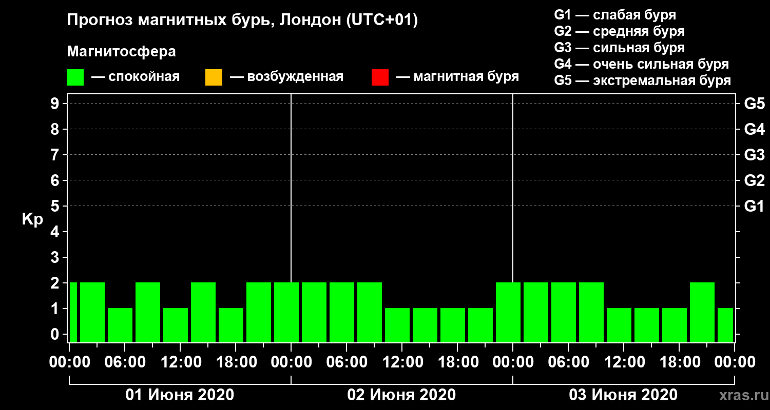 Прогноз магнитных бурь в Лондоне — 1 июня 2020 года