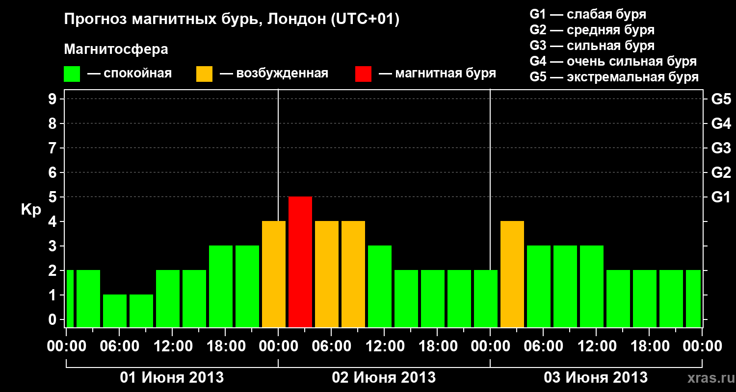 Прогноз магнитных бурь в Лондоне — 1 июня 2013 года