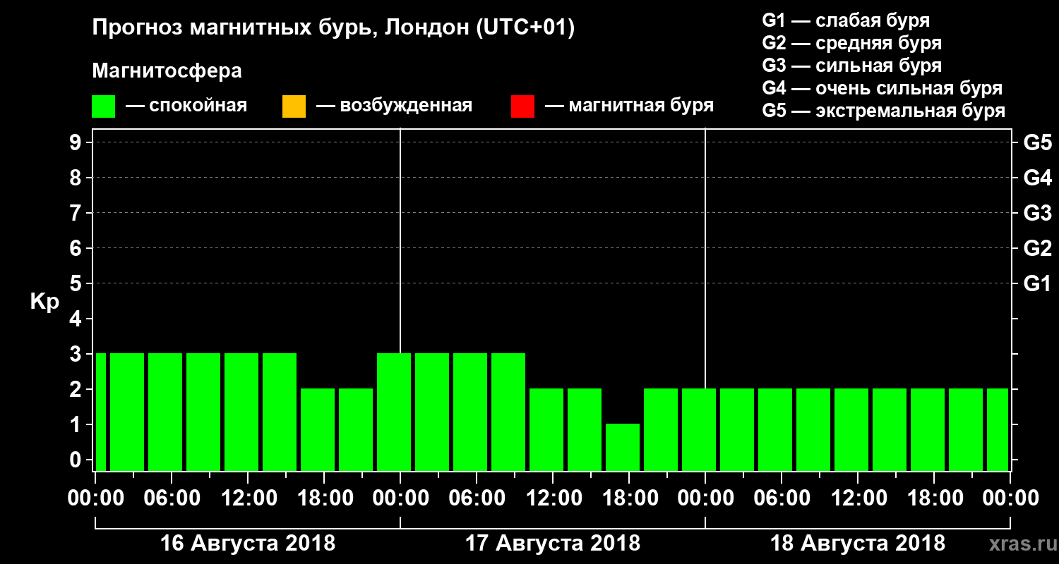 Прогноз магнитных бурь в Лондоне на 16 августа 2018 года
